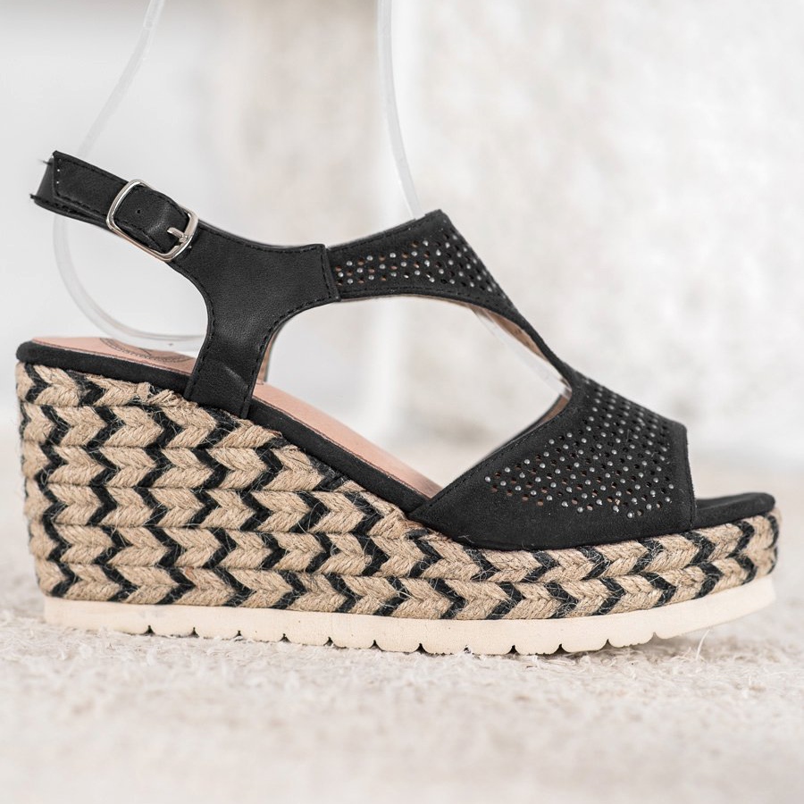 Ces espadrilles se distinguent par un subtil motif ajouré et des strass décoratifs qui leur confèrent un caractère unique. La hauteur du talon est de 8,5 cm et la plateforme de 3 cm, ce qui en fait une solution parfaite pour les fêtes et célébrations estivales. Ce modèle est parfait aussi bien pour un barbecue entre amis que pour une fête élégante.