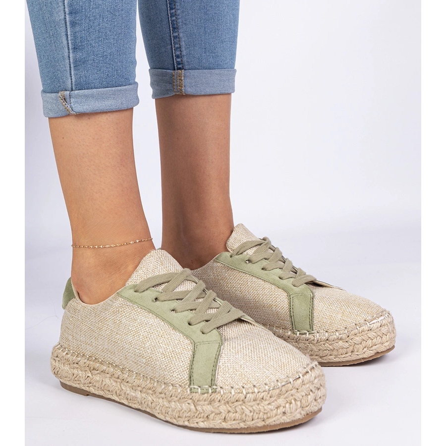 Détails: Espadrilles en dentelle des femmes vertes