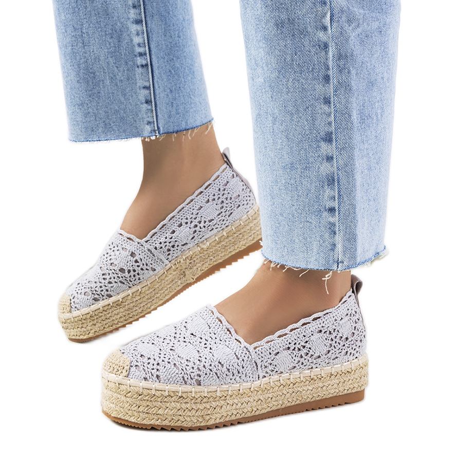 Détails: Espadrilles en dentelle grise sur la plateforme Akker