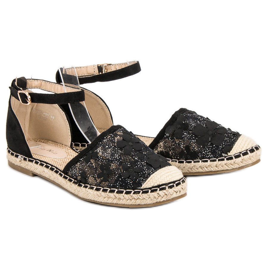 Détails: Nio Nio Espadrilles en dentelle le noir