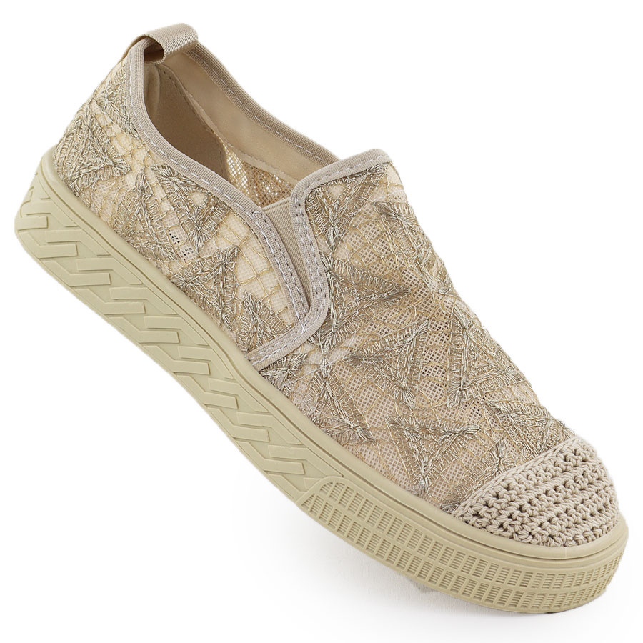 La couleur beige et la dentelle délicate donnent aux chaussures un look élégant et à la mode qui s'intègre parfaitement aux dernières tendances. Le matériau extérieur du tissu est non seulement esthétique, mais aussi pratique et facile à entretenir. Un orteil rond confortable et une fixation en glissade en font un pur plaisir à mettre et à enlever les espadrilles.