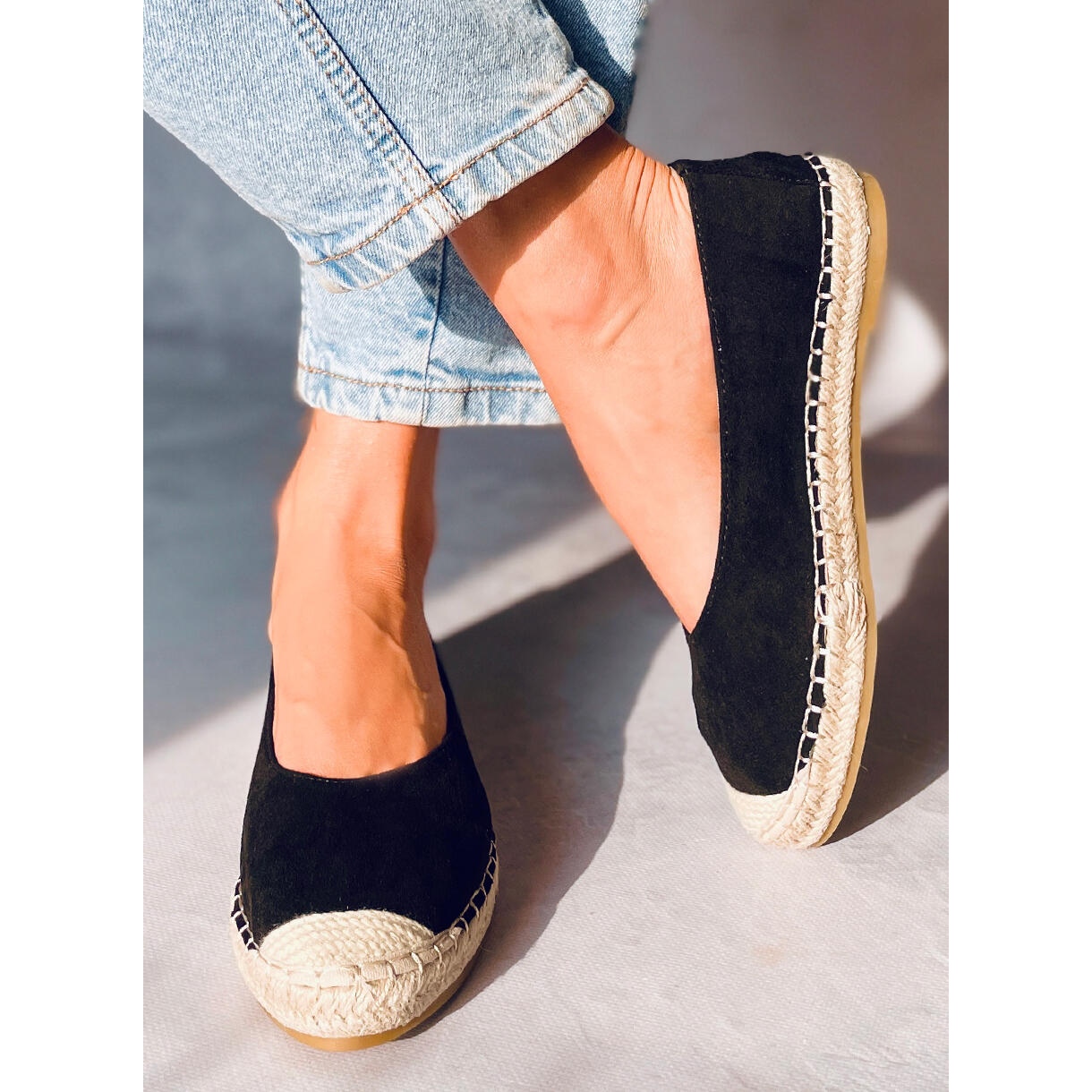 Nous vous présentons les espadrilles pour femmes Camino Black, qui allient élégance et confort, s'adaptant parfaitement au style estival. Ces espadrilles noires se distinguent par leur design galbé et leurs bouts en lin, ce qui en fait un choix parfait à porter au quotidien. Fabriqués en daim écologique, ils offrent non seulement l'esthétique, mais aussi le confort de port.