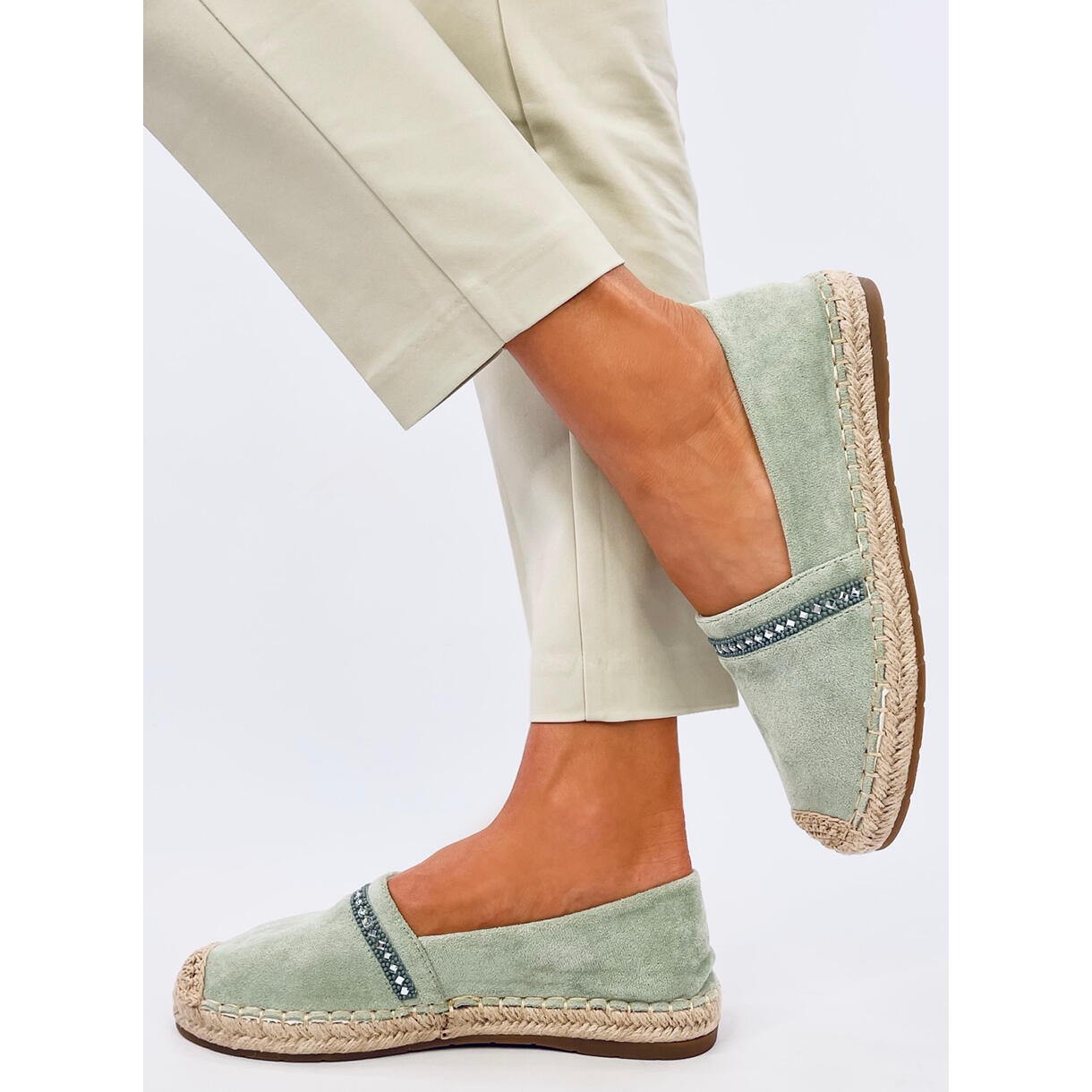 Préparez-vous pour les aventures estivales avec les espadrilles pour femmes Etance Green dans une belle teinte verte ! Ces espadrilles en daim sont le choix parfait pour les femmes qui souhaitent allier confort et style élégant. Leur design unique a été enrichi d'une subtile application de pierres, ce qui leur donne un caractère unique et vous permet de vous démarquer dans la foule.