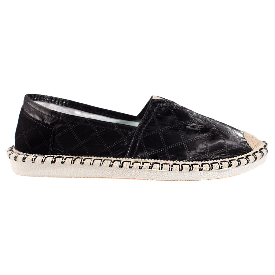 Fabriquées en cuir écologique verni, les espadrilles sont non seulement élégantes, mais sont également faciles à entretenir. Le nez rond et la semelle intérieure en textile garantissent une ventilation et un confort adéquats pendant la marche, ce qui les rend parfaites pour les journées de printemps et d'été. Une caractéristique intéressante est la semelle synthétique avec bande de roulement, qui offre une bonne adhérence sur diverses surfaces.