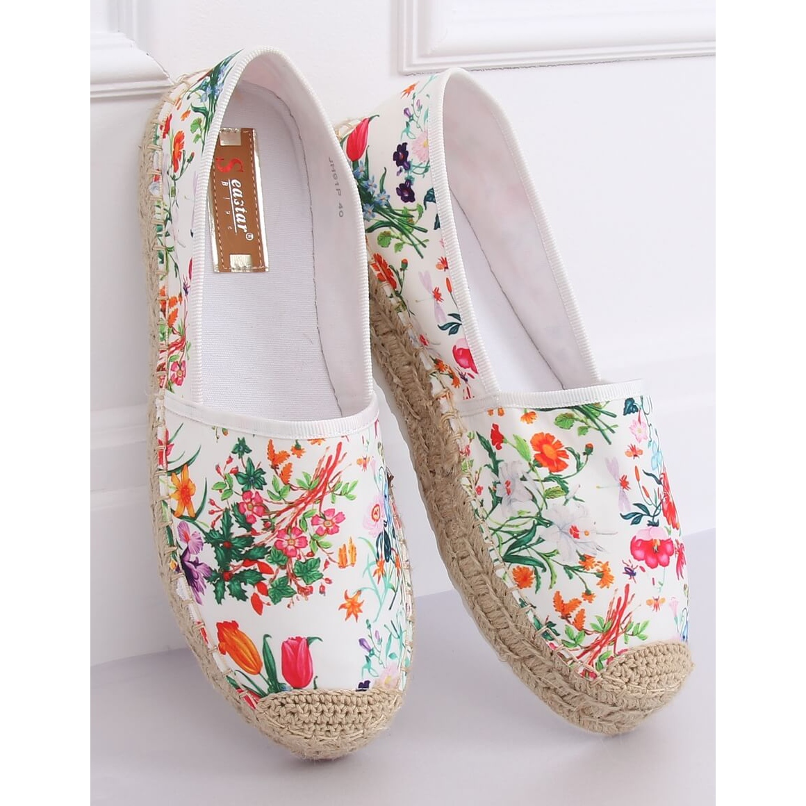 Détails: Espadrilles fleuries femme JH91P Blanc multicolore