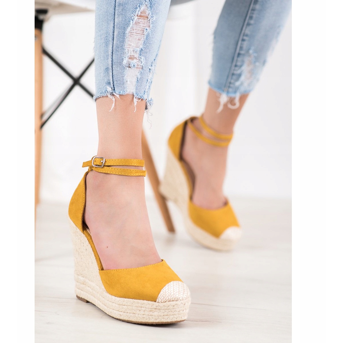 Détails: SHELOVET Espadrilles Hautes Sur Le Compensé jaune