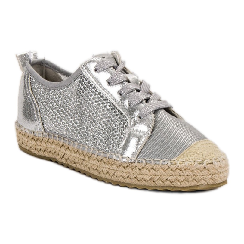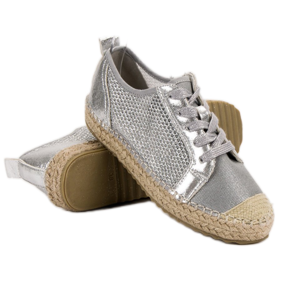 Découvrez le style original avec ces espadrilles ajourées à lacets signées Shelovet dans une élégante nuance de gris. Ces chaussures uniques allient un design moderne et une finition unique qui attireront certainement l'attention. Le motif ajouré et les paillettes subtiles les font briller, ce qui en fait un choix parfait pour le printemps et l'été, mais aussi pour l'automne et l'hiver.
