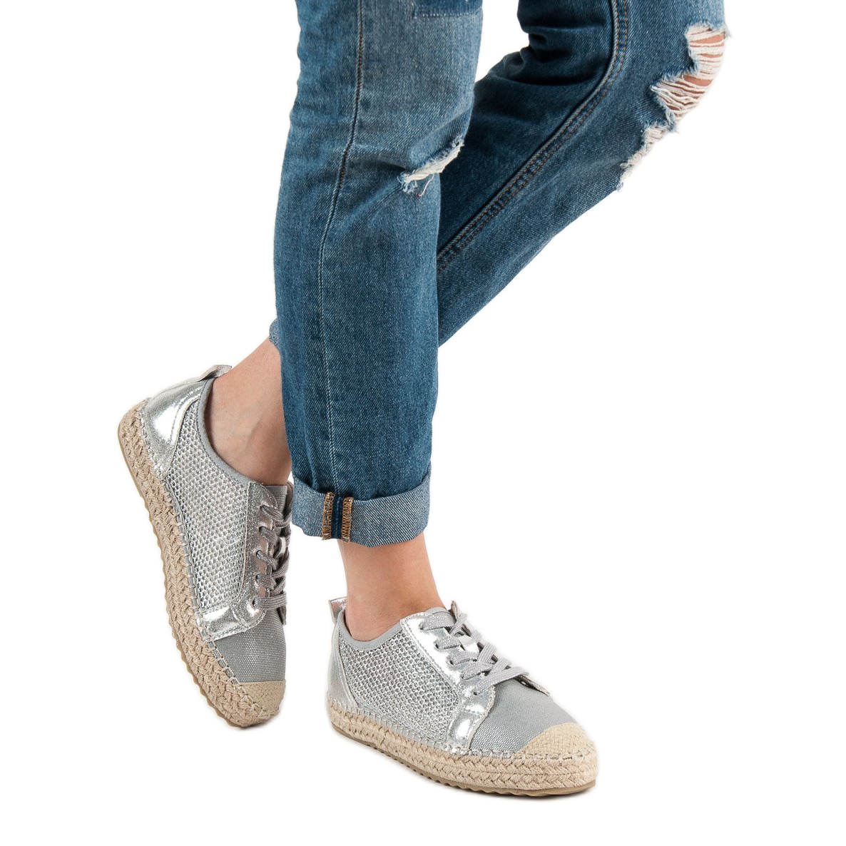 Détails: SHELOVET Espadrilles Lacées Ajourées gris