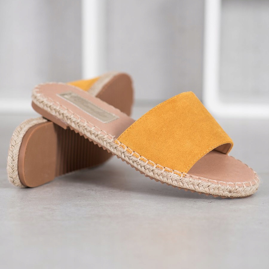 Découvrez le charme des journées d'été avec les tongs espadrilles légères Renda d'une couleur jaune intense. Ces tongs élégantes sont le choix parfait pour les promenades printanières et estivales, les fêtes en plein air ou les sorties shopping quotidiennes. Grâce à leur design à enfiler et à leur talon ouvert, elles offrent un maximum de confort et de liberté de port.