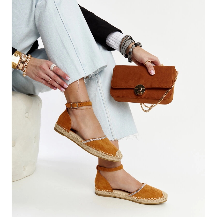 Les espadrilles aydan se distinguent par sa décoration de zircon d'origine, qui leur donne un peu de splendeur et en fait un élément unique d'une garde-robe d'été. Un nez rond et une tondeuse sont des avantages supplémentaires qui se soucient du confort et de la stabilité du pied. Camel en combinaison avec une semelle beige leur donne un personnage moderne mais aussi classique.