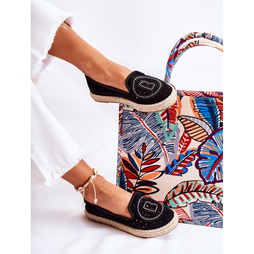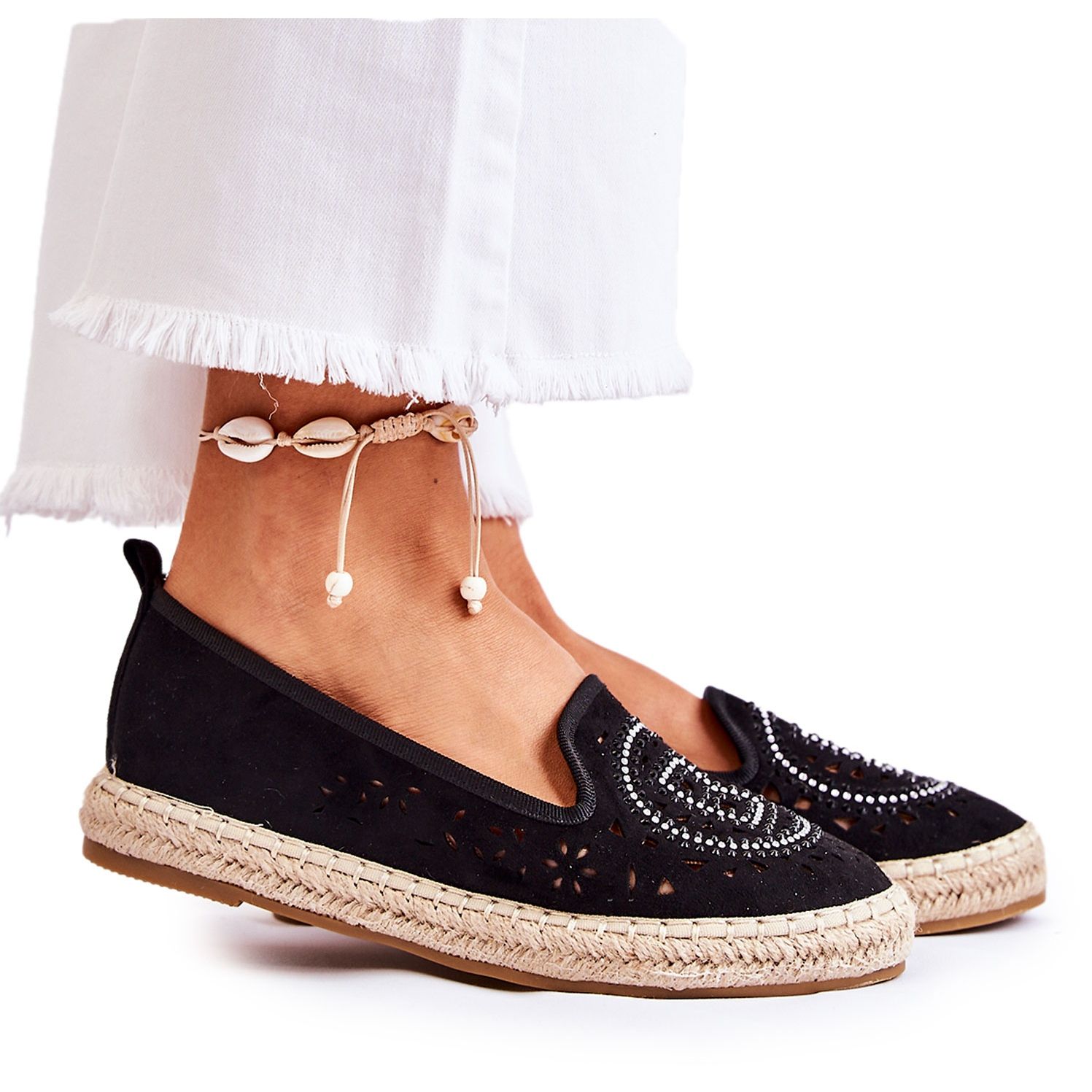 S.Barski Espadrilles Meredith noires à enfiler ajourées pour femmes