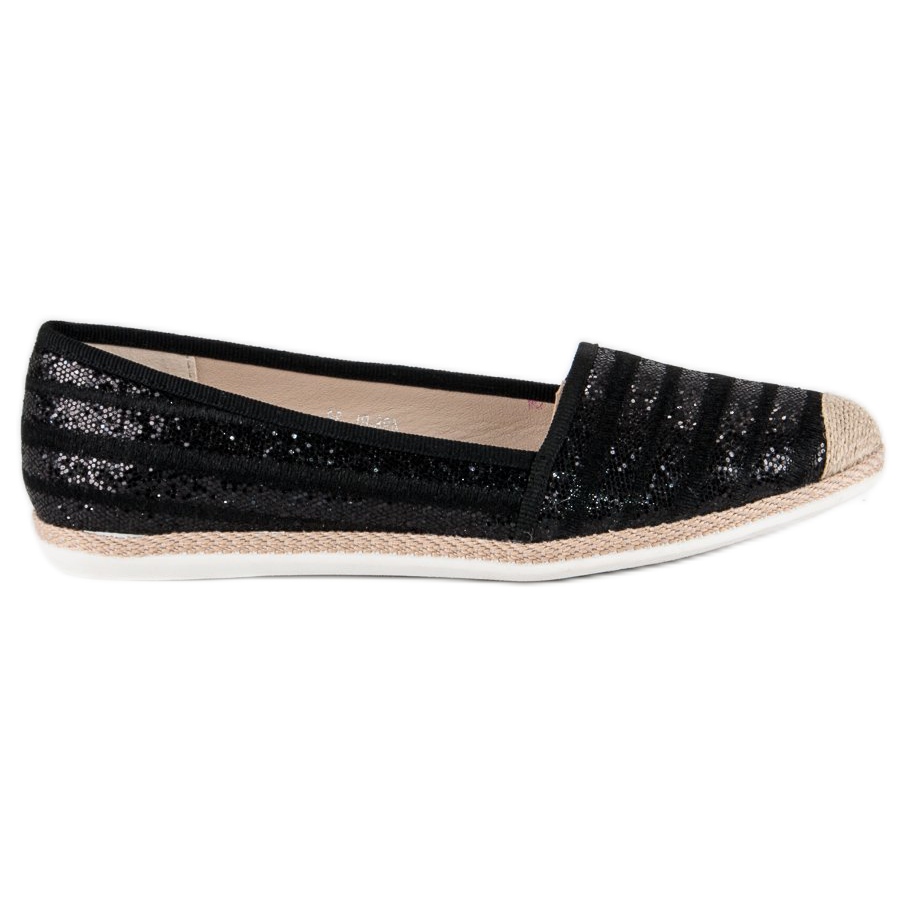 Les espadrilles noires sont fabriquées dans un tissu de haute qualité, ce qui garantit non seulement un aspect esthétique, mais également un confort de port. Le bout rond rend les pieds confortables et la fermeture à enfiler permet un enfilage facile et rapide, ce qui est extrêmement pratique au quotidien.