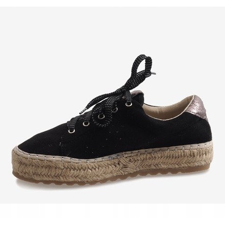 Nous vous présentons les espadrilles à lacets noires BB01P - le choix parfait pour les femmes qui apprécient le style et le confort. Ces chaussures légères sont dotées d'une semelle en ficelle tressée qui leur confère un caractère de vacances unique. Le dessus des espadrilles est réalisé dans un matériau semblable à du daim dans une élégante nuance de noir, ce qui les rend parfaitement adaptées aux styles quotidiens et plus formels.