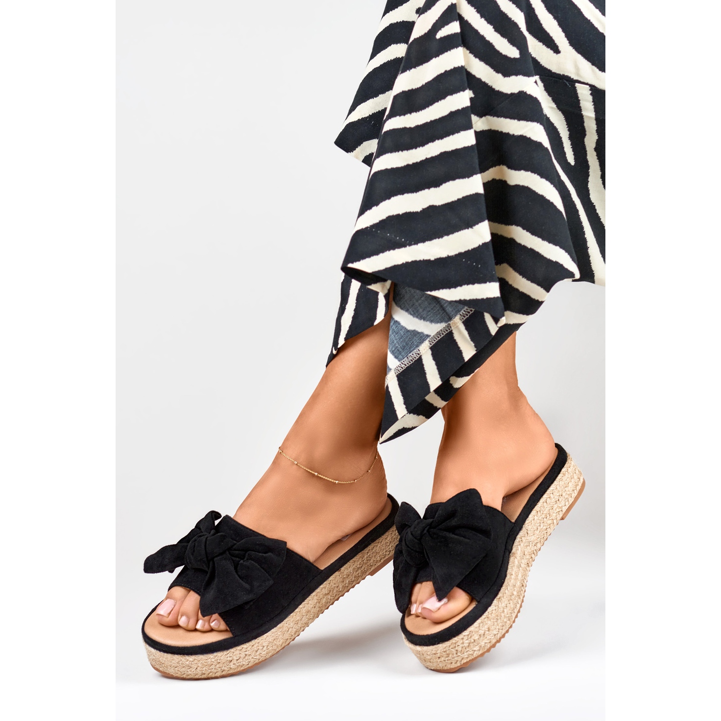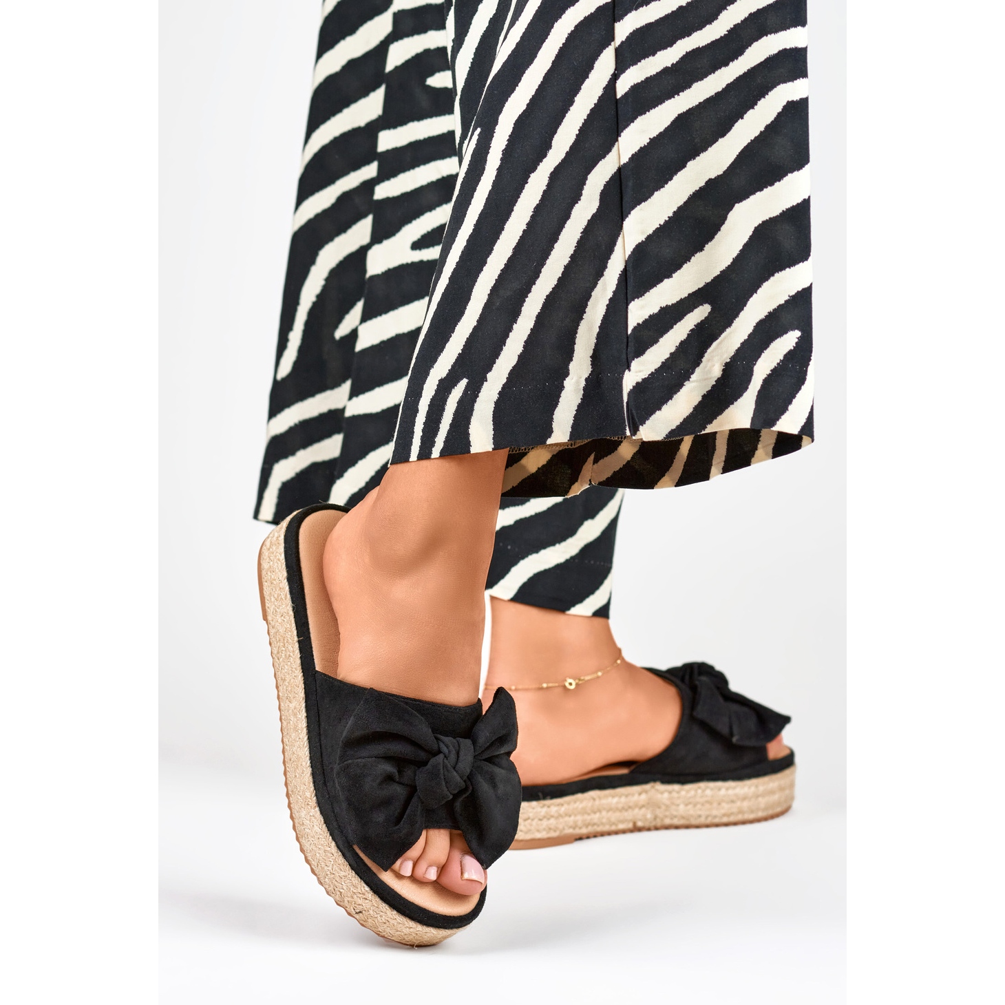 La plateforme de 4 cm de hauteur ajoute quelques centimètres de hauteur tout en assurant stabilité et confort lors de la marche. Un avantage supplémentaire réside dans les nœuds subtils qui confèrent aux chaussures un caractère original et un charme féminin.