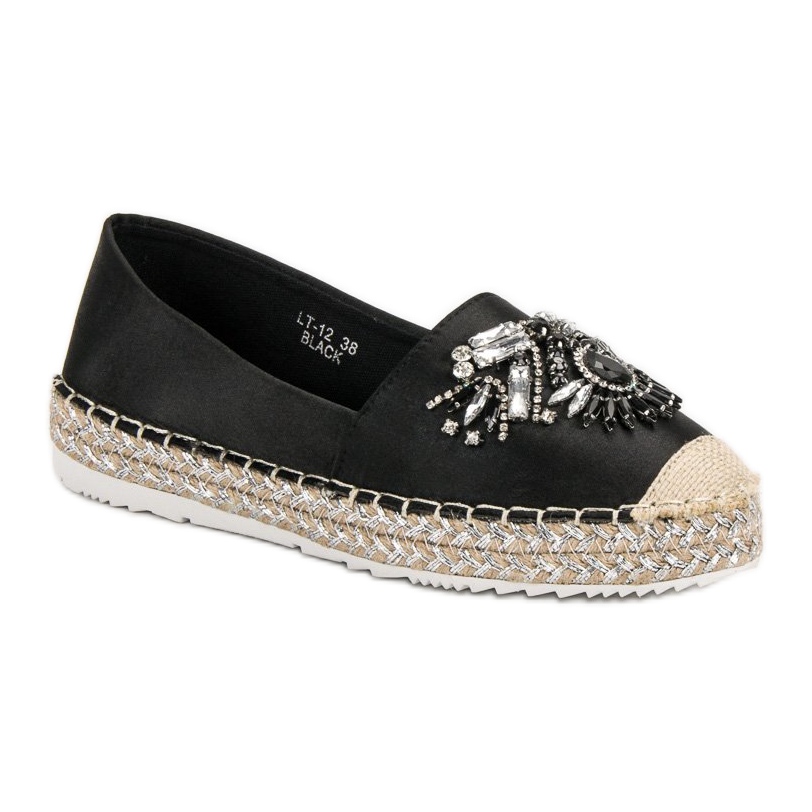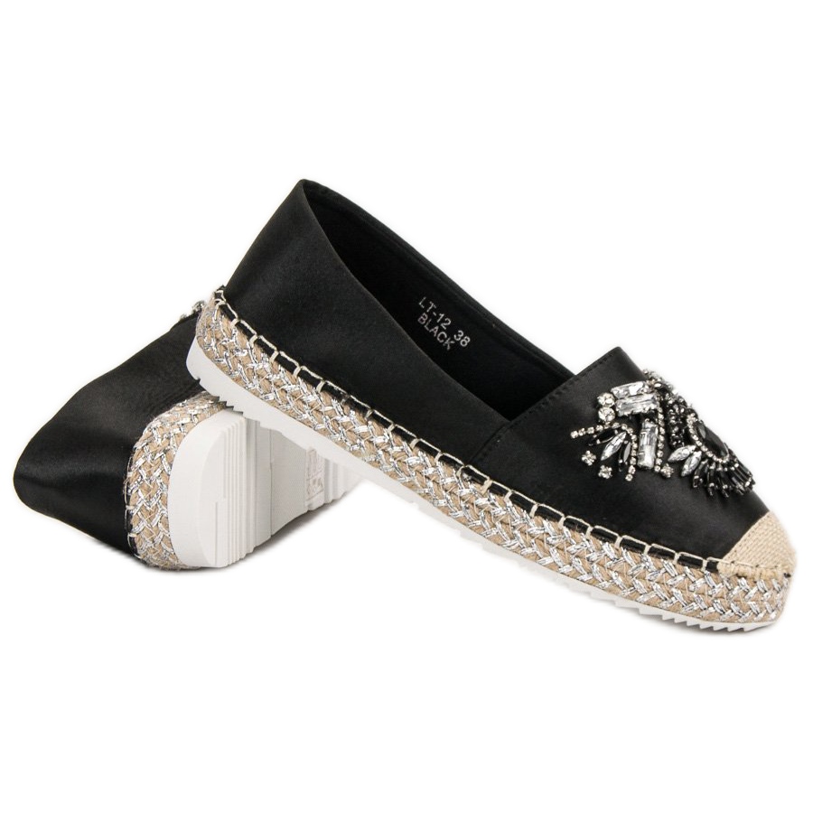 Les décorations argentées sous forme de strass confèrent aux espadrilles un caractère distinctif, ce qui en fait un complément parfait aux tenues décontractées et plus élégantes. Les espadrilles noires avec des décorations de la marque KeeShoes sont une excellente option pour le printemps et l'été, qui attireront certainement l'attention et vous feront vous sentir spécial.