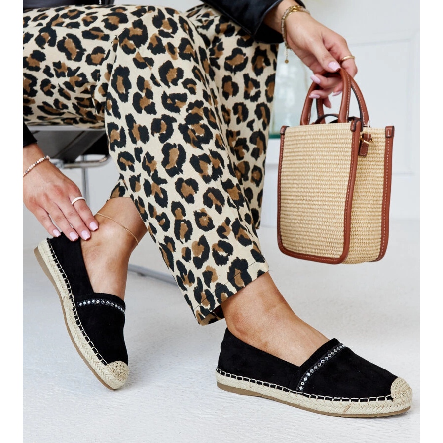 Un avantage supplémentaire de ces chaussures est les strass décoratives, qui leur donnent un personnage unique et à la mode. Les Espadrilles noirs avec des zircons Abia se mélangent parfaitement avec les stylisations d'été, leur donnant un peu de lueur. Fabriqués en cuir en daim écologique, ils sont non seulement esthétiques, mais aussi respectueuses de l'environnement.