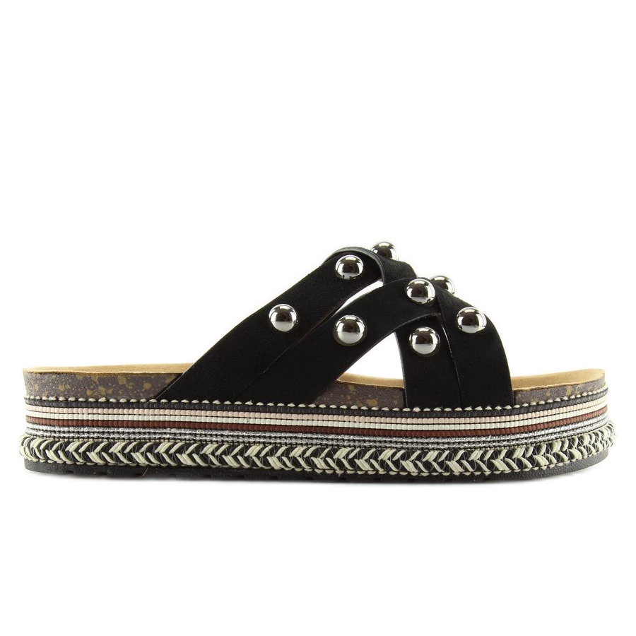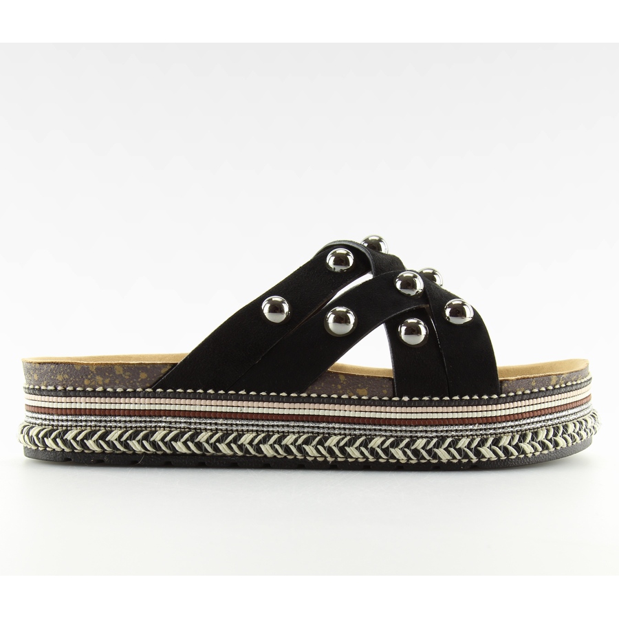 Il n'y a pas lieu de s'inquiéter de leur durabilité - le matériau extérieur en cuir suédé écologique assure non seulement un aspect esthétique, mais aussi une résistance à un usage quotidien. Les tongs noires BV-418 sont un incontournable de toute garde-robe féminine ! Le motif dominant, les strass et l'absence de bout les rendent parfaites pour l'été, et leur hauteur de plateforme de 4,0 cm ajoute une subtile augmentation sans sacrifier le confort.