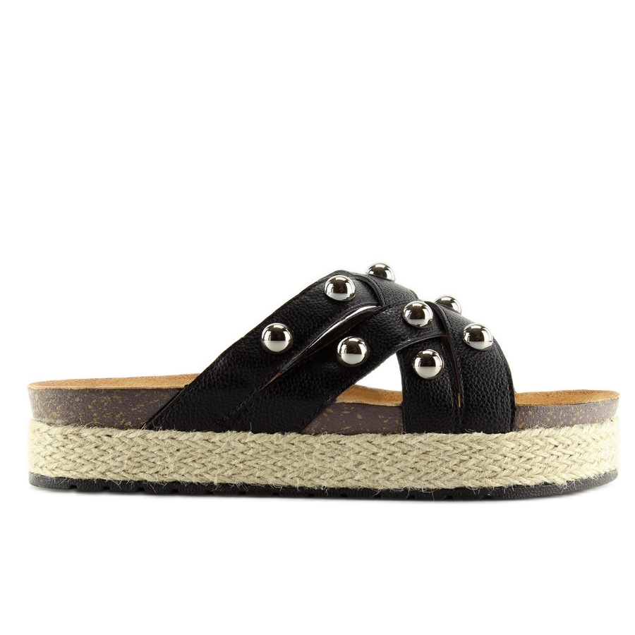 Inna marka Espadrilles noires CK22P chaussons noirs le noir