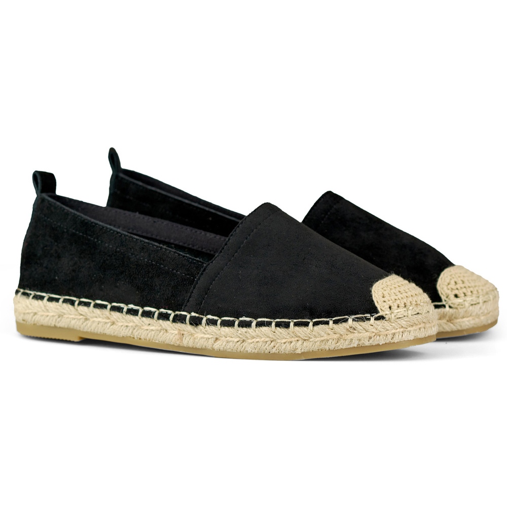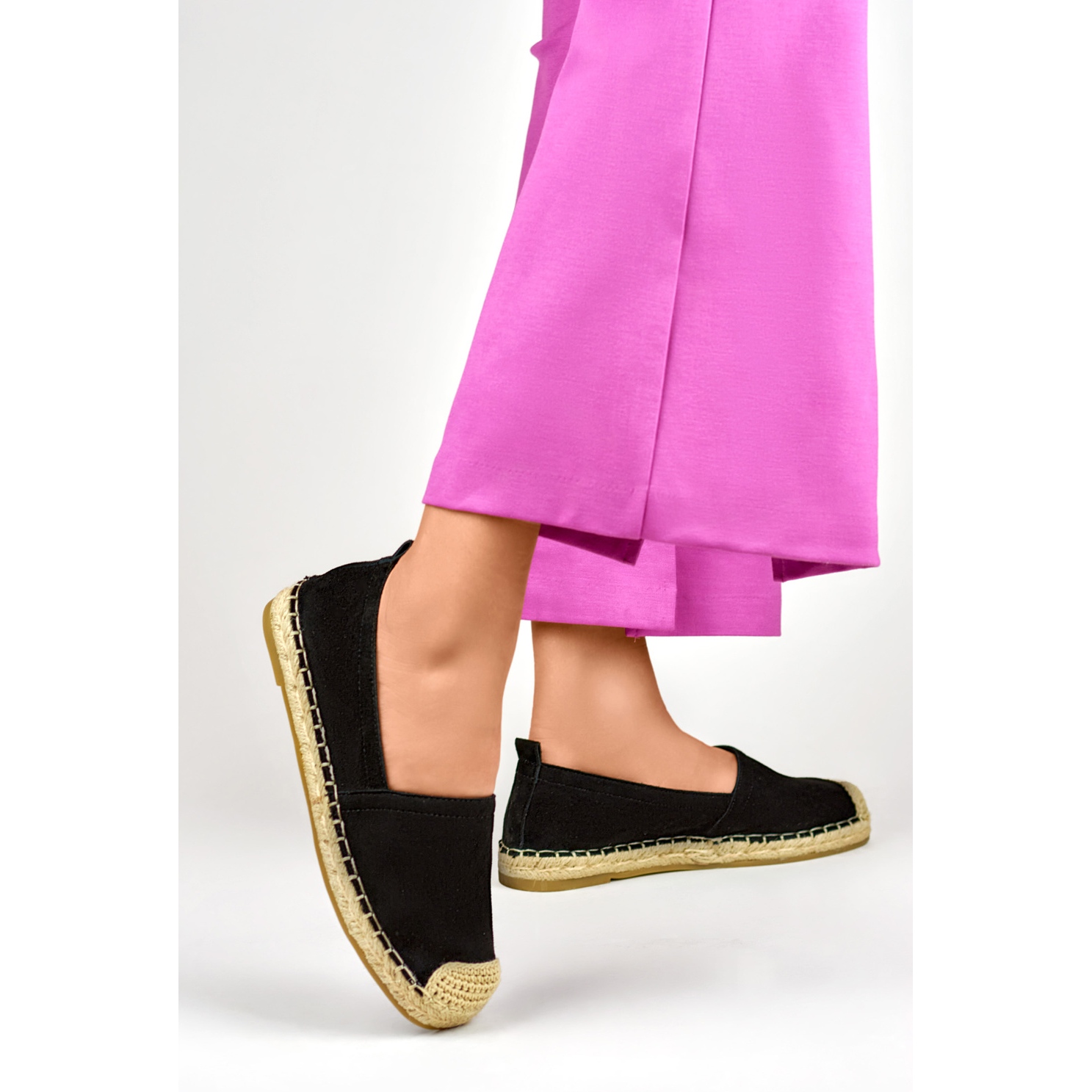 Les espadrilles noires classiques pour femmes sont le choix parfait pour les chaudes journées d'été. Fabriqués en daim écologique, ils sont confortables et faciles d'entretien. Les chaussures sont entièrement noires, sans motifs supplémentaires, ce qui souligne leur caractère classique. Elles présentent un bout rond et une plateforme de 2 cm de hauteur qui ajoute une touche d'élégance sans rendre la marche difficile. Les chaussures sont à enfiler, ce qui les rend beaucoup plus faciles à enfiler et à enlever. La semelle est synthétique et la semelle intérieure est en tissu, ce qui garantit un confort de port tout au long de la journée. Le produit provient de la collection KeeShoes et possède l'emballage d'origine du fabricant. Les espadrilles pèsent 0,6 kg emballage compris. Les chaussures sont parfaites pour le printemps et l'été, elles s'adaptent à de nombreux styles et ajoutent du caractère à la garde-robe de chaque femme.
