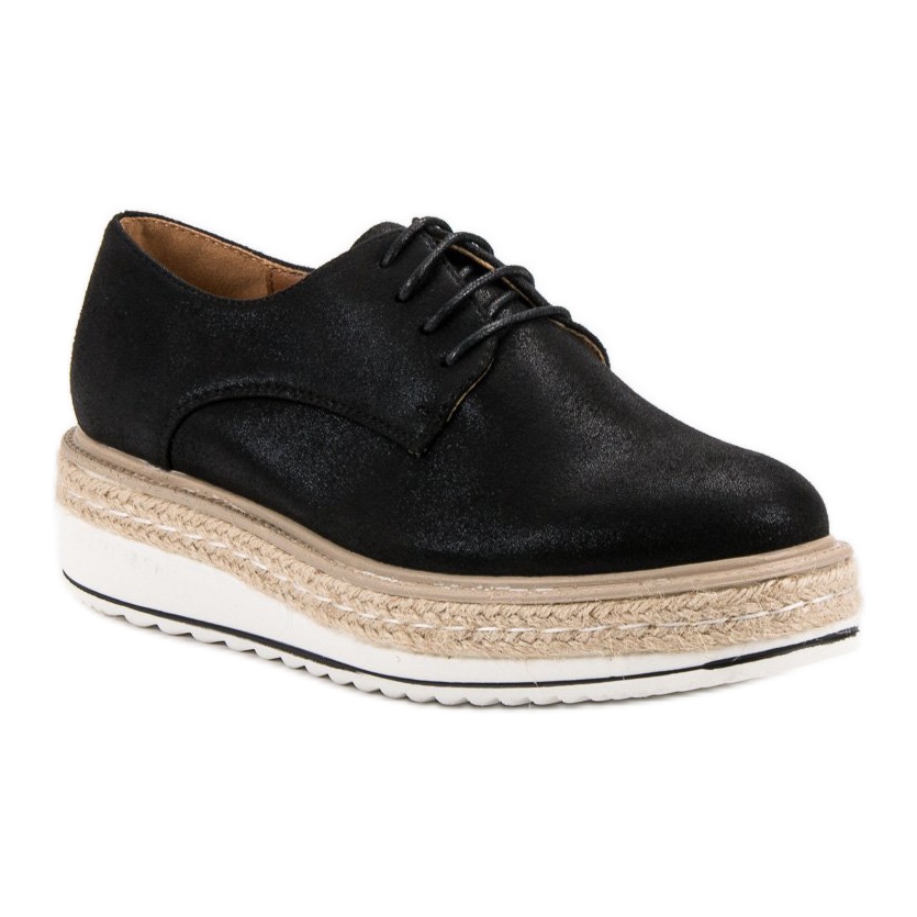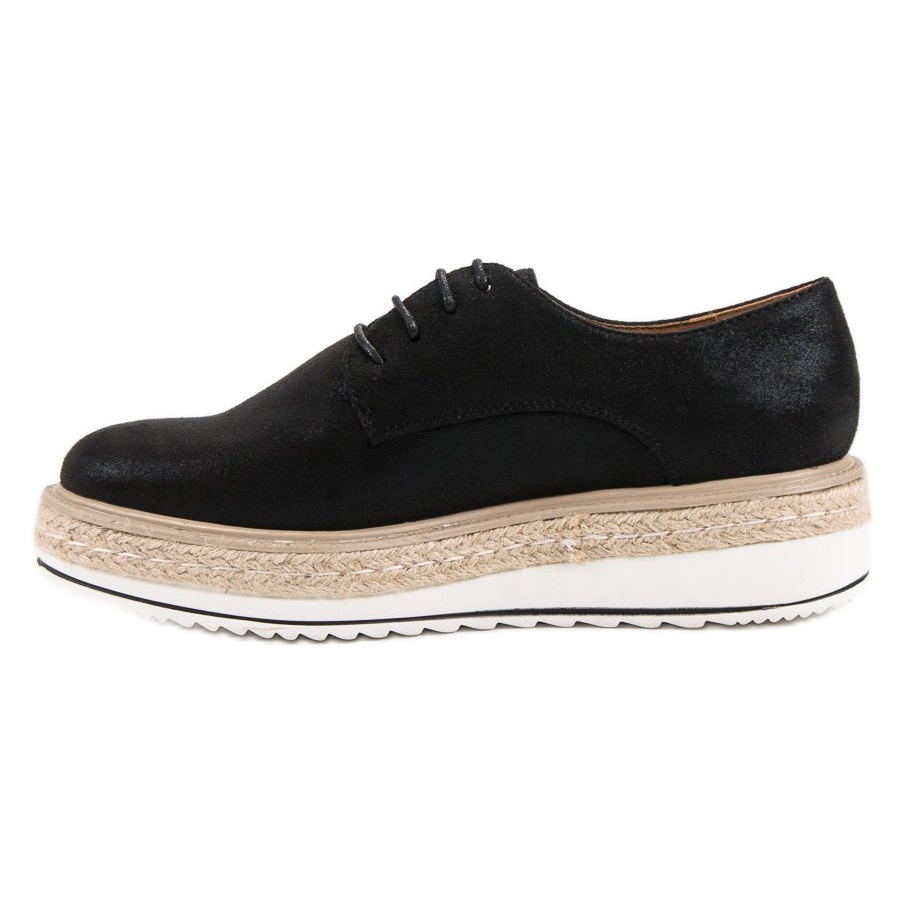 Les espadrilles Clowse noires sont le choix parfait pour les femmes à la recherche de chaussures à la mode et confortables qui complèteront parfaitement différents styles. Ce modèle attire l'attention par sa surface élégante et brillante, qui ajoute classe et chic.
