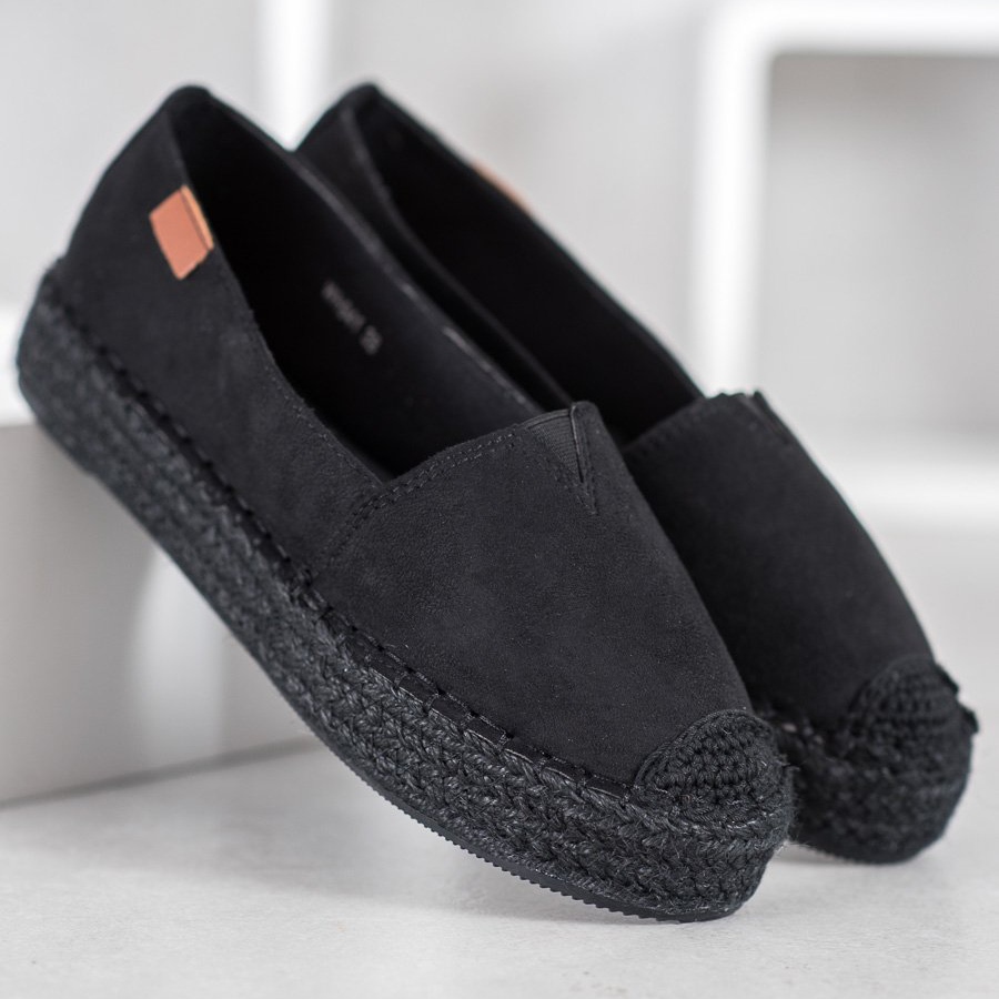 Détails: SHELOVET Espadrilles Noires En Daim le noir