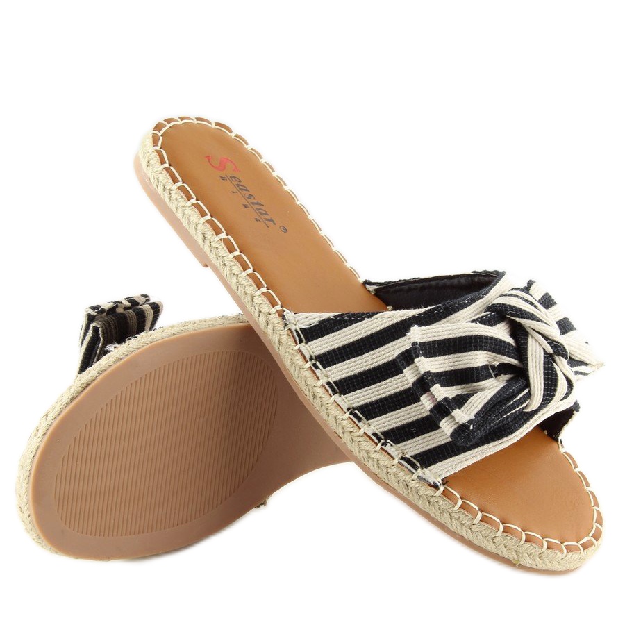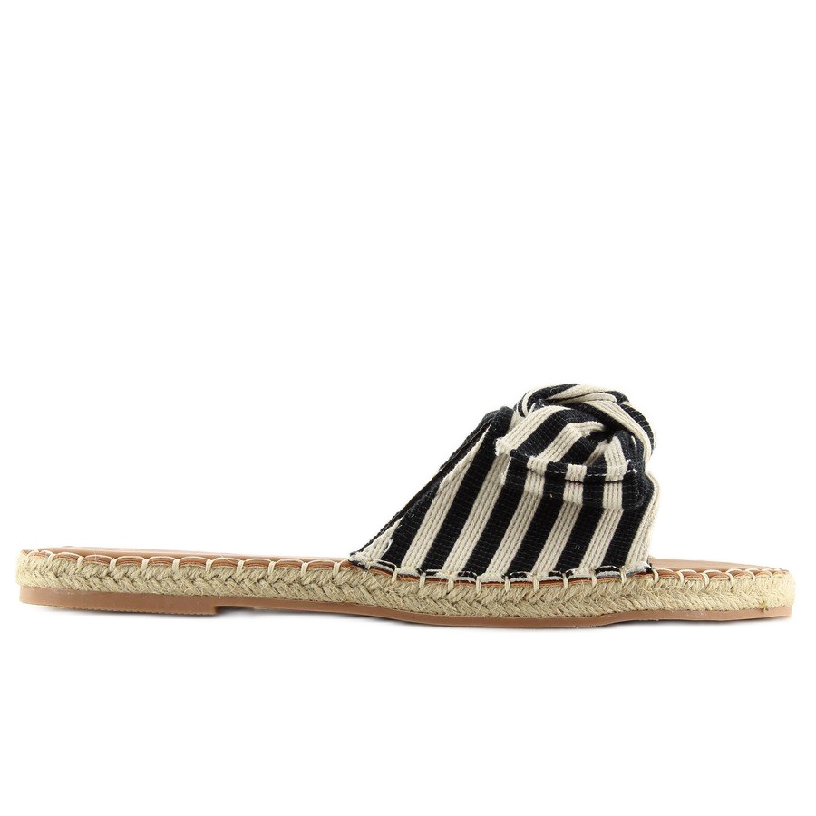 **Tongs espadrilles noires LL-133P Noir** - des chaussures élégantes et confortables qui seront parfaites pour la garde-robe estivale de chaque femme. Ces magnifiques chaussons pour femme se distinguent par un nœud élégant qui leur ajoute un charme féminin. La semelle terminée par un cordon en lin leur confère un caractère estival unique, s'adaptant parfaitement à différents styles.