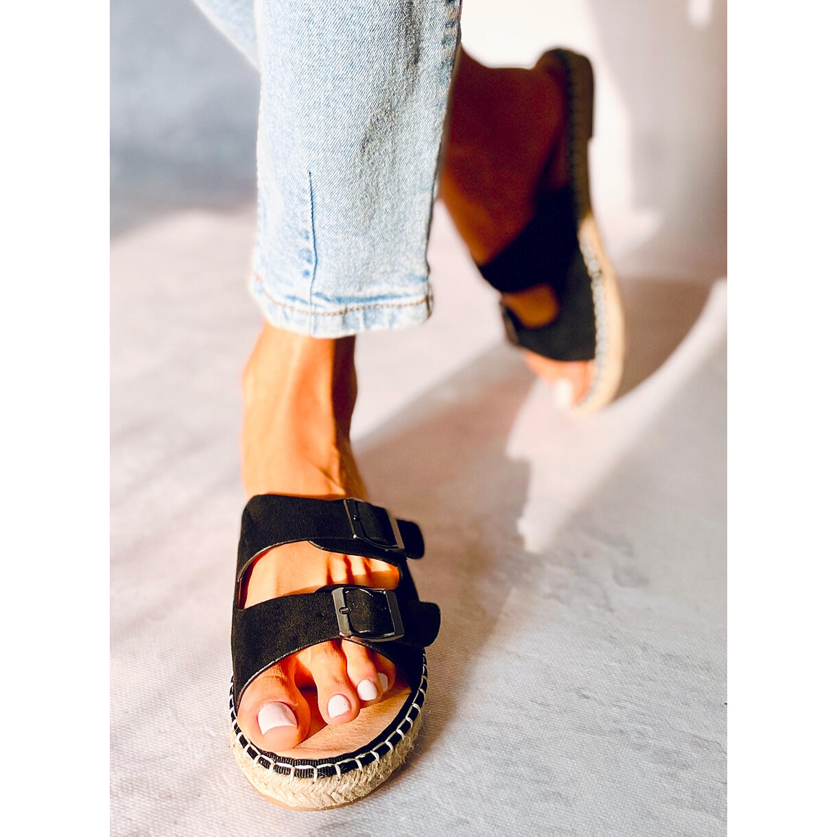 Voici l'option parfaite pour les journées d'été : les tongs espadrilles Maina Black en noir. Ces tongs élégantes pour femmes, conçues pour un usage quotidien, allient confort et style. Dotées d'une semelle plate et terminées par un cordon en lin, elles s'adaptent parfaitement à l'ambiance décontractée et estivale.