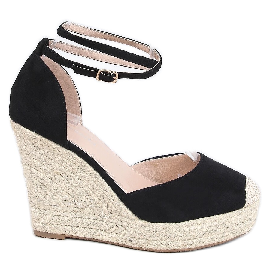 Inna marka Espadrilles noires sur talon compensé 3010 Noir le noir