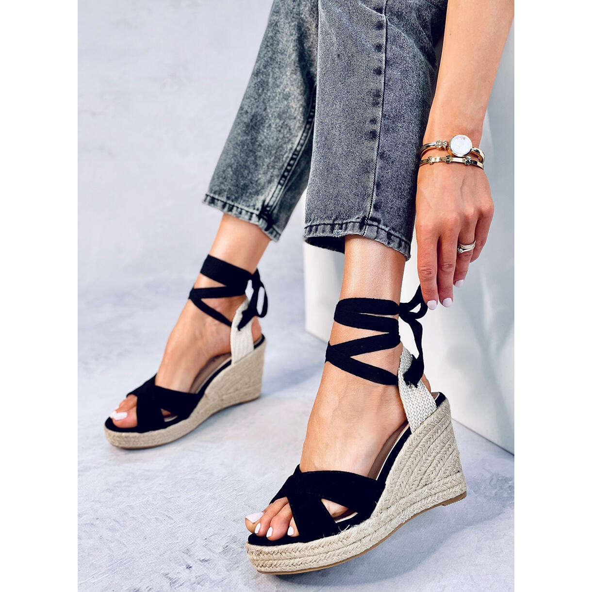 Avec une hauteur de cale impressionnante de 12 cm et une plateforme supplémentaire de 3 cm, ces espadrilles ajouteront quelques centimètres à votre silhouette, rendant vos jambes encore plus longues et plus fines. De cette façon, vous augmentez non seulement votre confiance en vous, mais vous façonnez également visuellement votre silhouette.