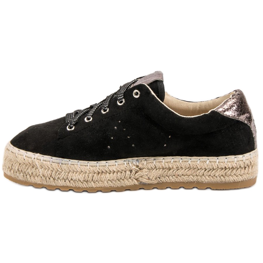Nous vous présentons des baskets espadrilles uniques de la marque Seastar dans une élégante couleur noire. Ce modèle incroyablement tendance avec une semelle épaisse est un choix parfait pour les femmes qui apprécient le style et le confort. Fabriquées dans une matière textile de haute qualité, ces chaussures se distinguent par un talon décoratif pailleté et de drôles de lacets à pois, qui leur confèrent un caractère unique.