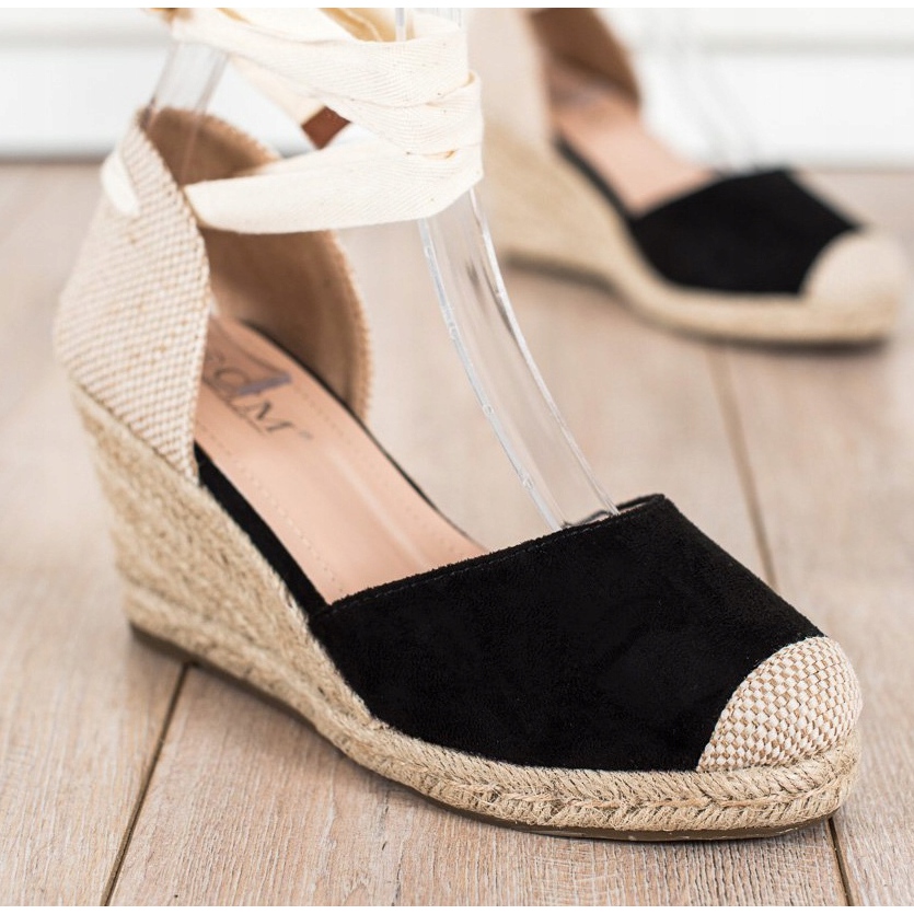 Détails: Cm Paris Espadrilles Nouées Sur Compensée beige le noir