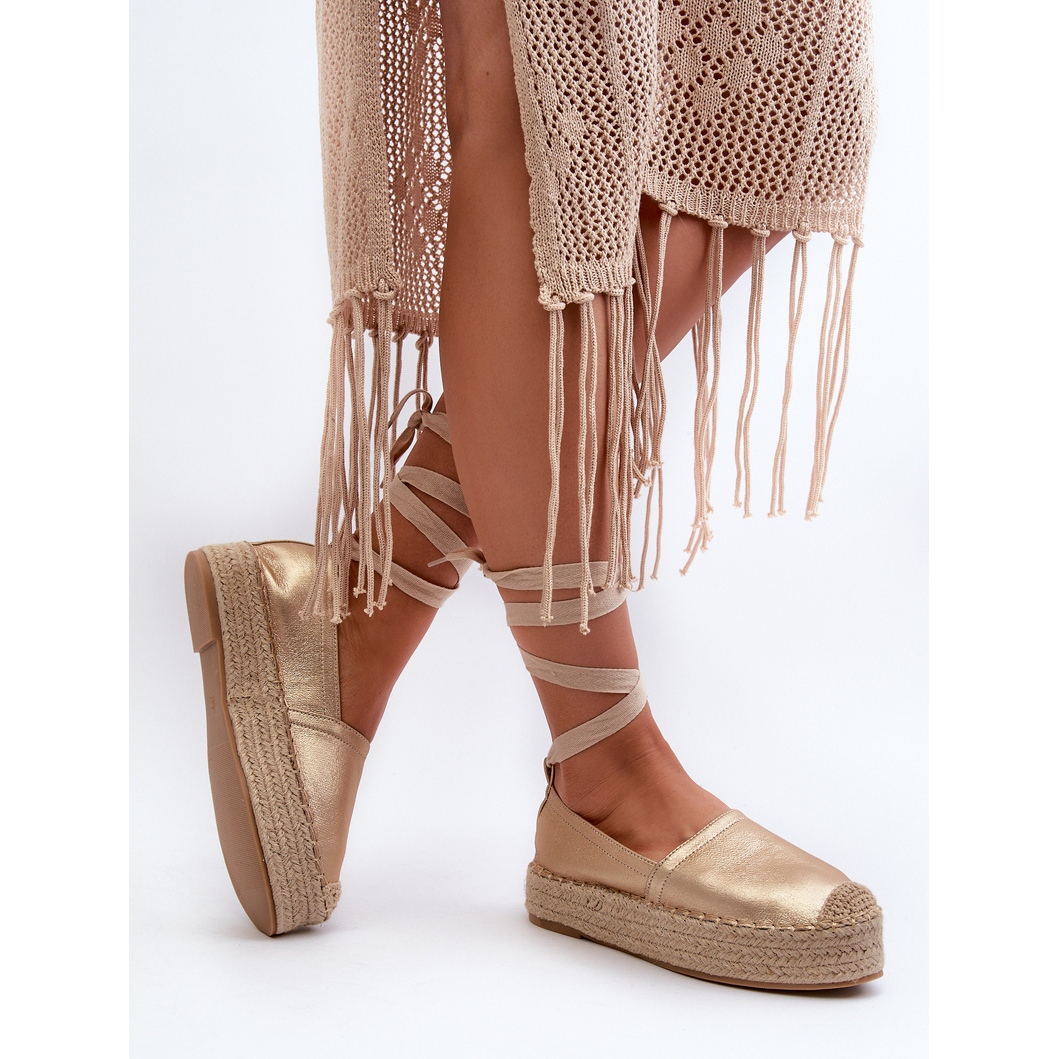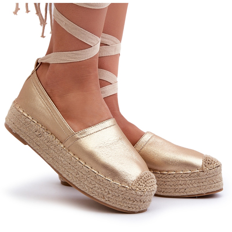 Détails: Espadrilles Pour Femmes Nouées Sur Une Plateforme Avec Tailesse Dorée Tressée d'or