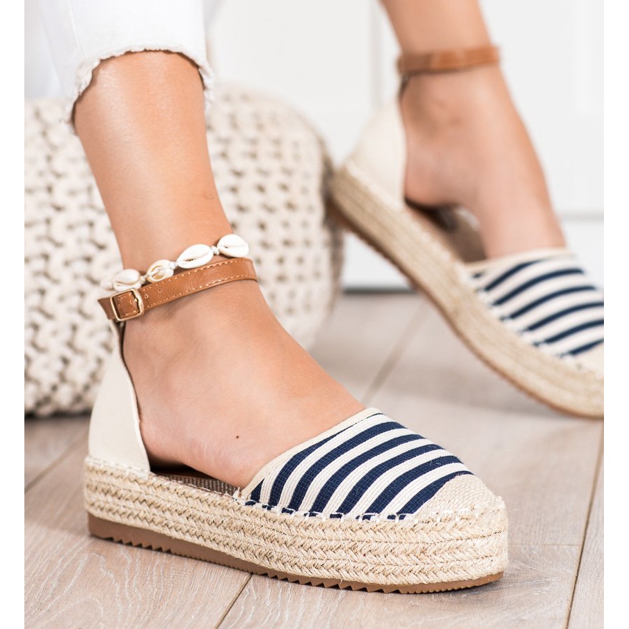 Détails: Clowse Espadrilles Rayées Avec Boucle beige bleu