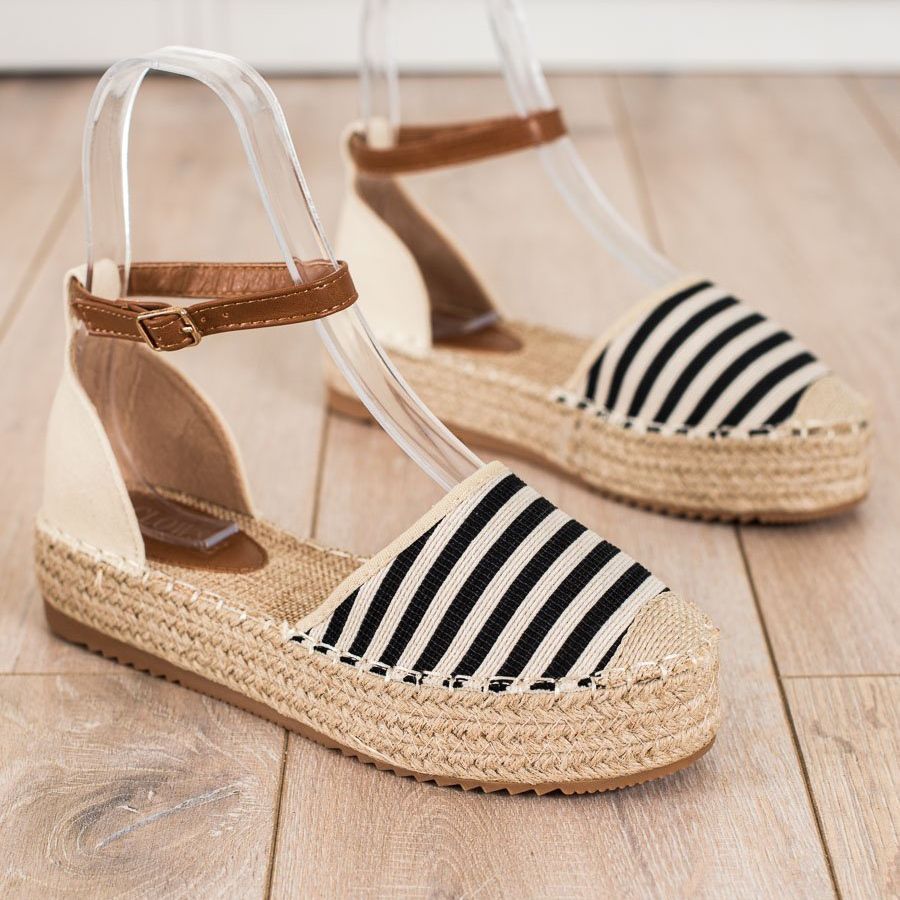Détails: Clowse Espadrilles Rayées Avec Boucle beige brun noir