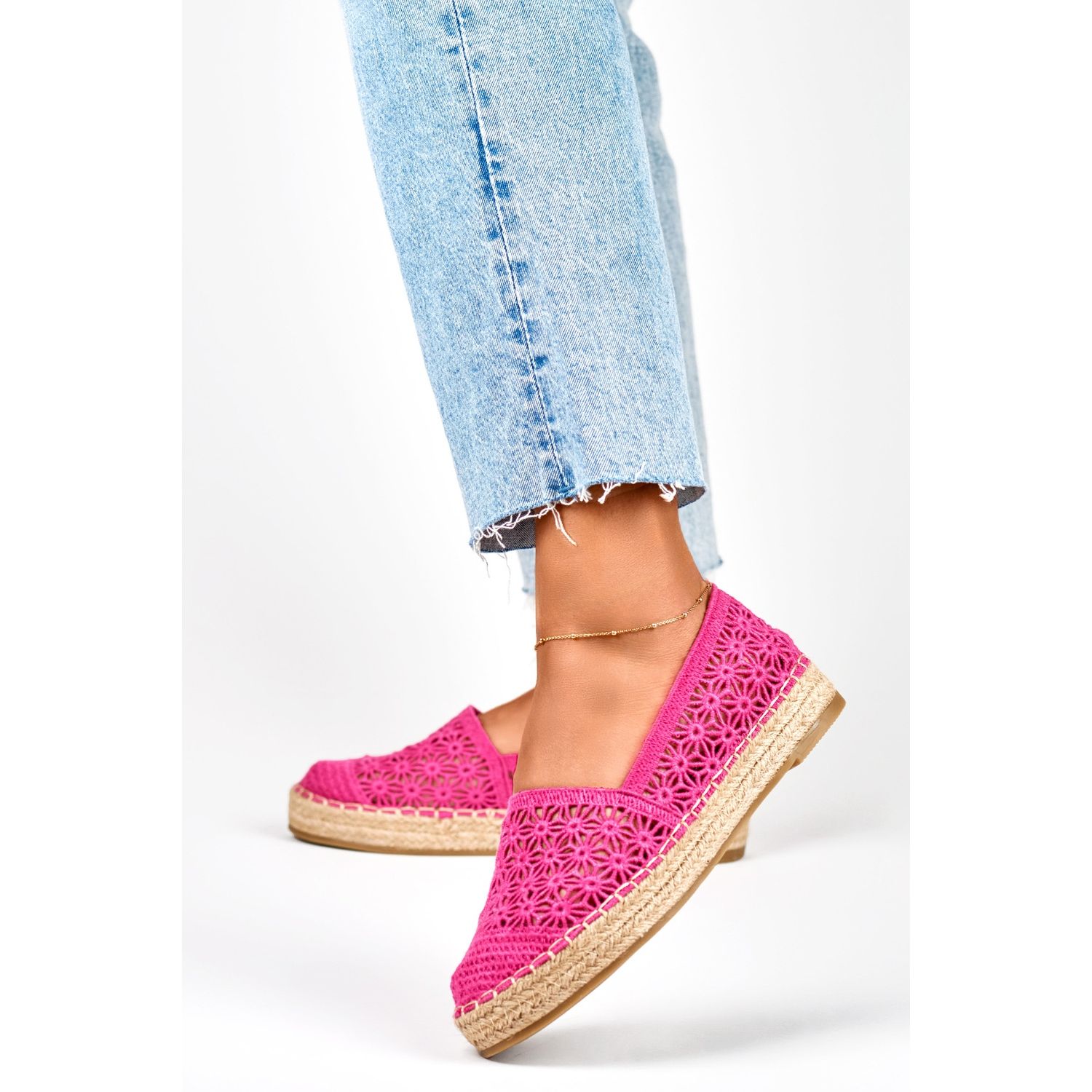 Espadrilles élégantes et féminines avec des détails en dentelle - un complément parfait à la garde-robe d'été. Commandez dans l'emballage d'origine et profitez chaque jour du confort et de la mode.