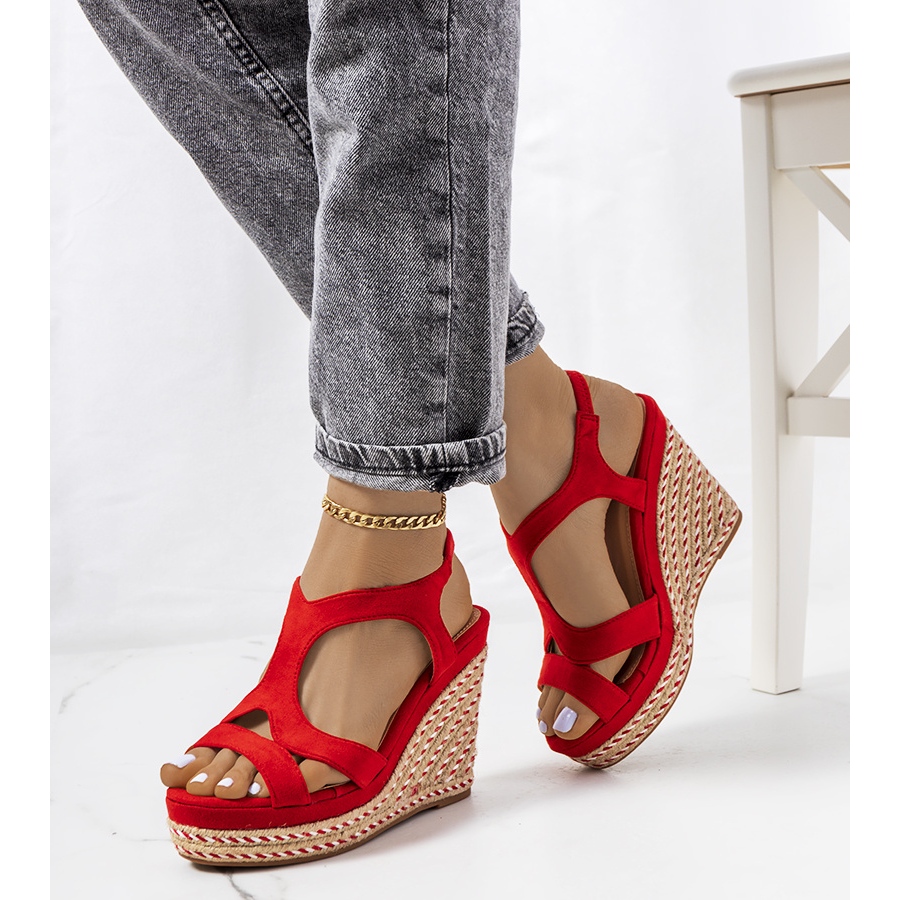 Inna marka Espadrilles rouges sur un coin de cèdre