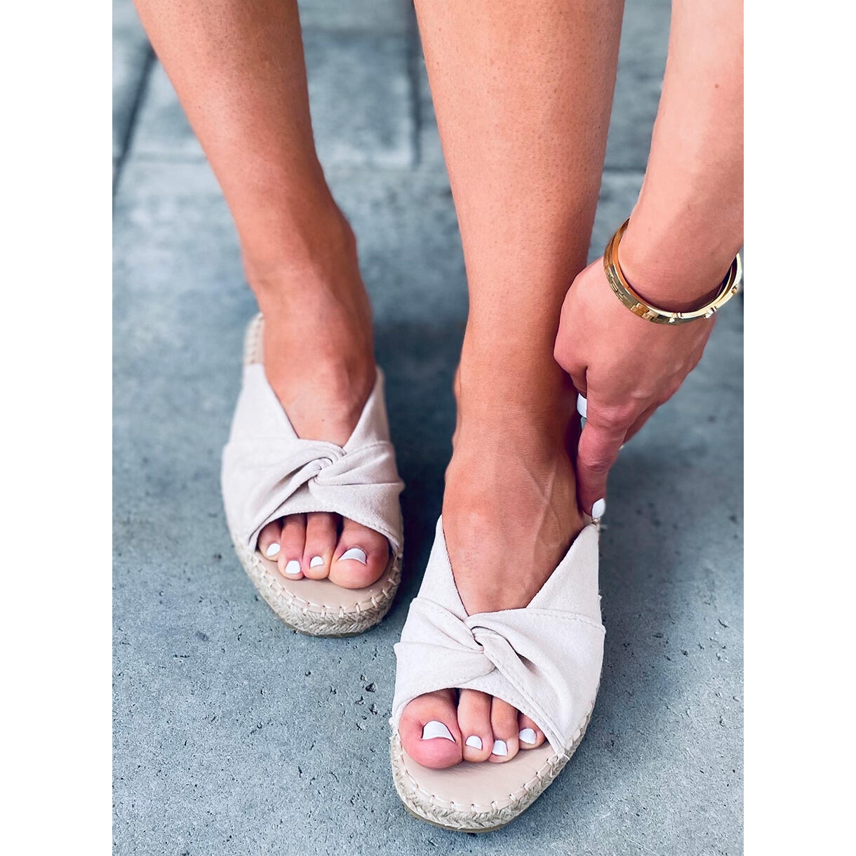 Découvrez un style et un confort uniques avec les tongs espadrilles Teit en beige ! Ces charmantes tongs en daim pour femmes sont un choix parfait pour les journées d'été. Leur design unique associe une semelle tissée en corde de lin à une finition lisse et tendance, les rendant à la fois élégantes et confortables.