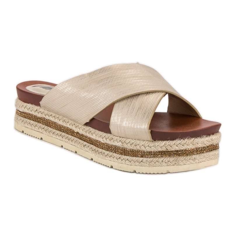 Découvrez l'élégance et le confort en un seul - les tongs espadrilles dorées de la célèbre marque Inna sont le choix parfait pour toutes les femmes qui souhaitent allier style et confort. Fabriquées en cuir écologique de haute qualité, ces tongs présentent un design simple mais efficace qui s'intègre parfaitement aux looks décontractés du quotidien.