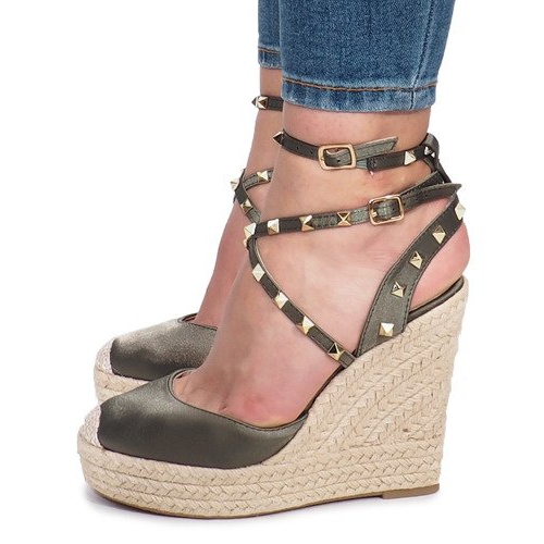 Détails: Espadrilles vertes sur le talon compensé de Hella