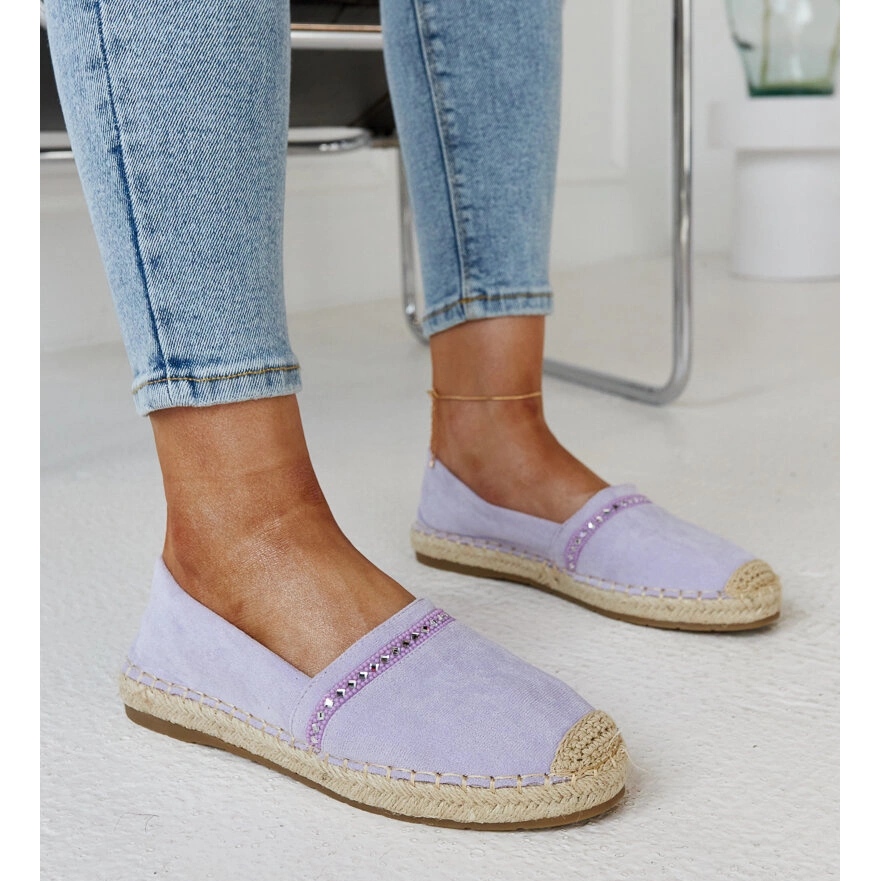 Les espadrilles violettes avec strass sont la quintessence du style estival, une combinaison de confort et d'élégance, parfaites pour les femmes qui veulent avoir un look élégant et moderne même pendant les journées les plus chaudes. Présenté par une marque indéfinie, le modèle 8221 se démarque des autres espadrilles par son design original et ses détails soigneusement sélectionnés.