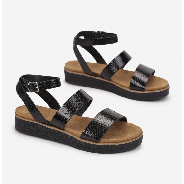 Découvrez l'élégance et le confort avec les sandales d'été Vices 100-167-38 de couleur noire classique. Ces élégantes sandales à plateforme de 4 cm de haut sont la combinaison parfaite entre design de mode et confort au quotidien. Leur aspect attrayant est complété par de subtils accents de paillettes et des rayures décoratives, qui à leur tour acquièrent un caractère unique grâce au gaufrage et au polissage.