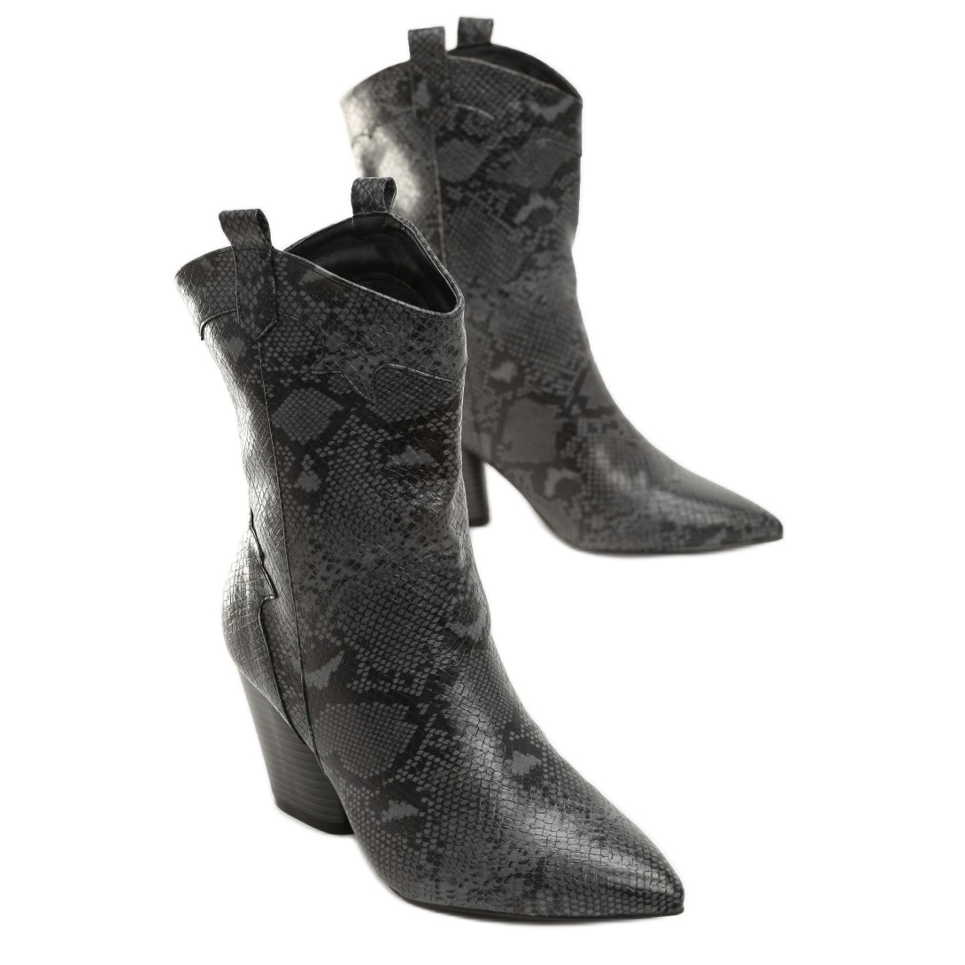 Le bout pointu et la largeur ample de la chaussure la rendent à la fois élégante et confortable. Combinées au motif animal dominant, ces bottes attireront certainement l'attention et seront un complément parfait à toute garde-robe. Choisissez les talons hauts Vices 1585-38-noir pour mettre en valeur votre individualité et vous sentir en confiance dans toutes les situations !