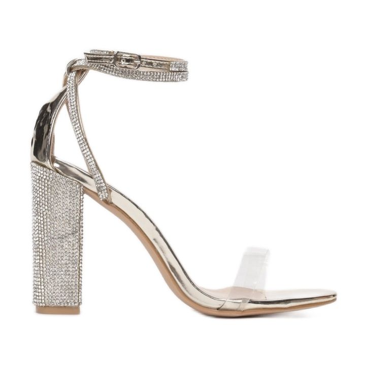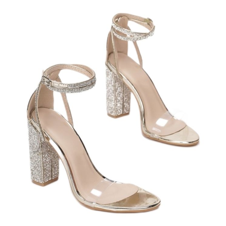 La hauteur du talon de 10,5 cm, basée sur un talon bloc, permet d'ajouter quelques centimètres de hauteur tout en assurant un confort de marche. La fermeture à boucle facilite l'enfilage et le retrait, et des éléments supplémentaires, tels que des strass et des strass, confèrent aux sandales un caractère et un éclat uniques.