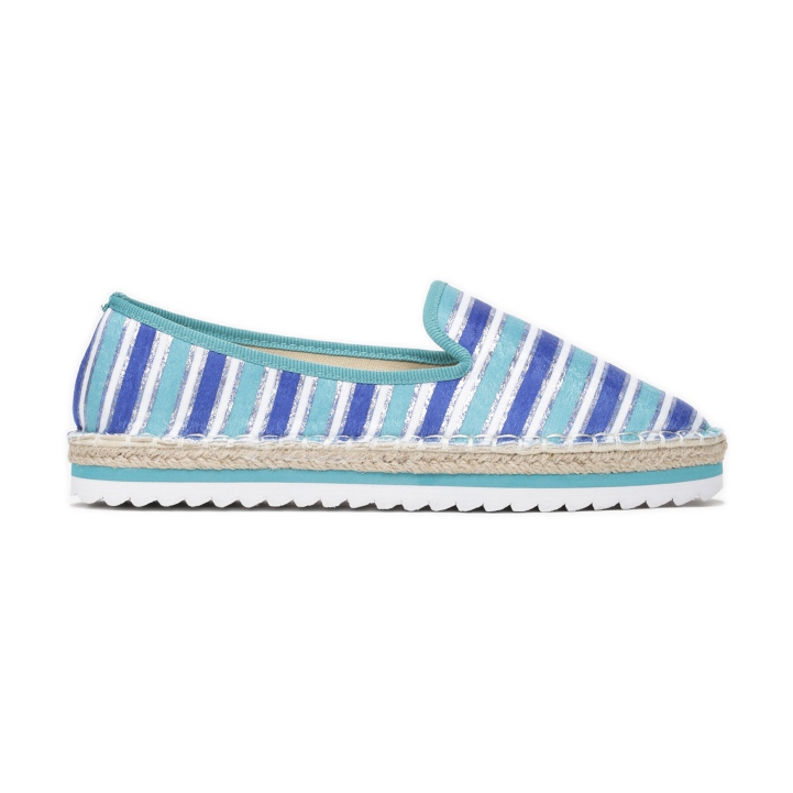 Les chaussures ont un bout rond et un talon plat de 2,5 cm, ce qui assure un confort de port tout au long de la journée. Grâce à la fermeture à enfiler, l'enfilage est simple et rapide. Fabriquée à partir de matériaux de haute qualité, la couche extérieure est un matériau différent, ce qui donne aux espadrilles un aspect très élégant. La semelle intérieure remplie de tissu et la semelle synthétique garantissent un confort et un ajustement parfait.