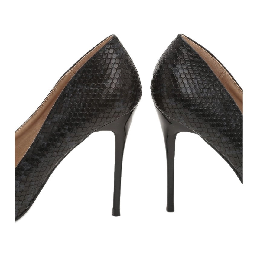 Nous vous présentons les élégants escarpins Vices 3309-38 en noir, qui allient design tendance et confort. Ces talons hauts uniques sont fabriqués dans un matériau imitant la peau de serpent, ce qui leur confère un caractère unique et en fait un choix idéal pour les occasions importantes.