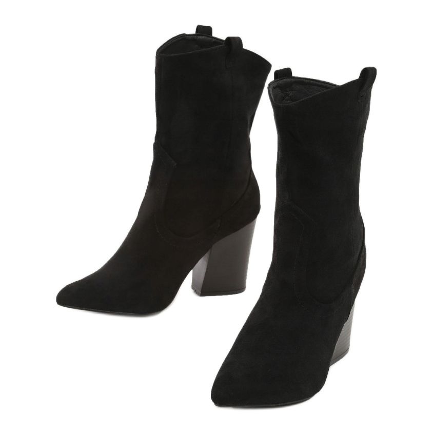 Voici le choix parfait pour les jours de printemps et d'automne - les bottes de cowboy Vices 3320-38 dans une élégante couleur noire. Ces chaussures uniques raviront toutes les femmes qui apprécient la combinaison du style et du confort. Fabriquées en éco-suède de haute qualité, elles présentent une tige mi-mollet, qui ajoute un caractère unique.