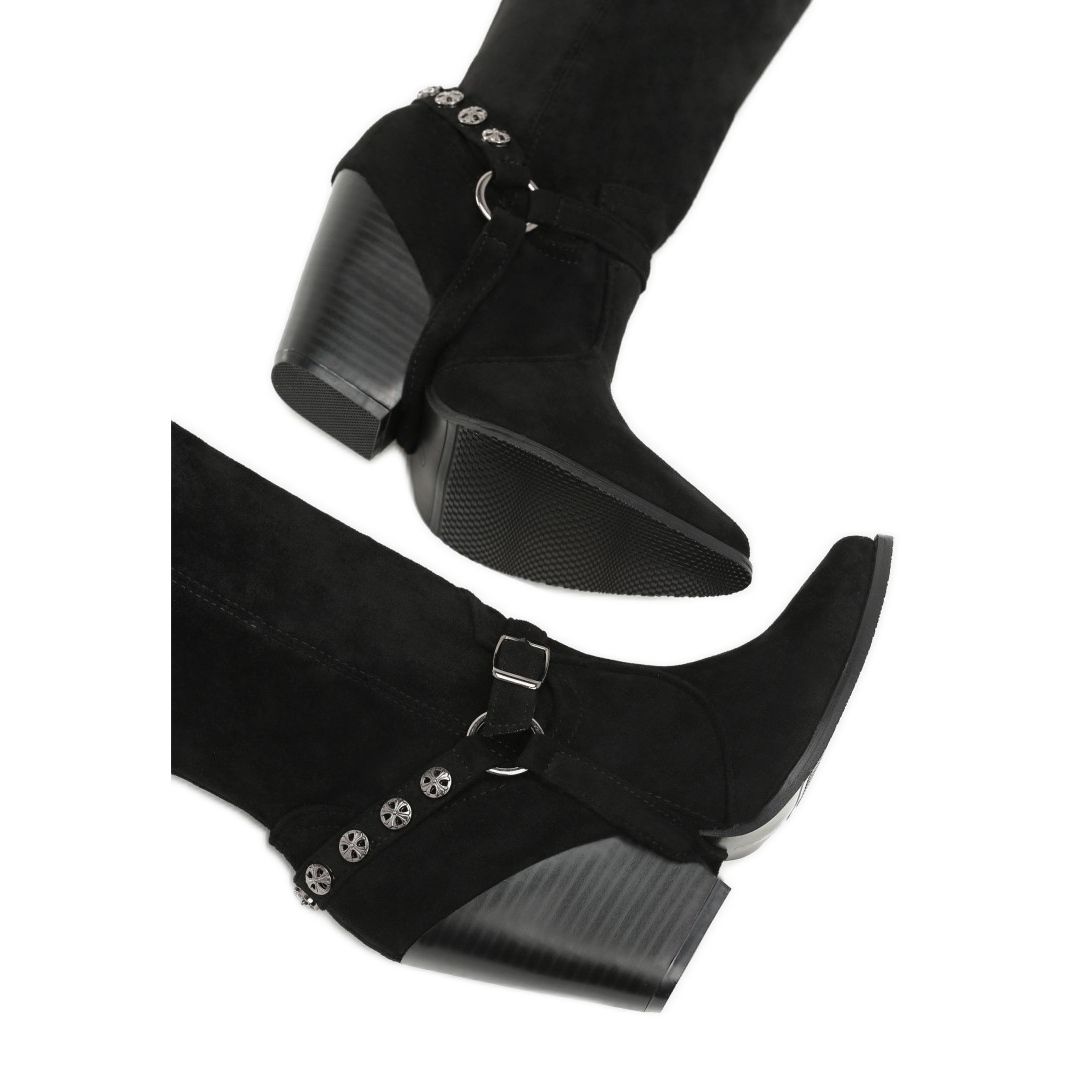 Découvrez les bottes à la mode Vices 3323-38 dans une élégante couleur noire, qui compléteront parfaitement votre style. Ces chaussures pour femmes uniques, fabriquées en daim écologique, allient le style classique des bottes de cowboy avec une approche moderne de la mode.