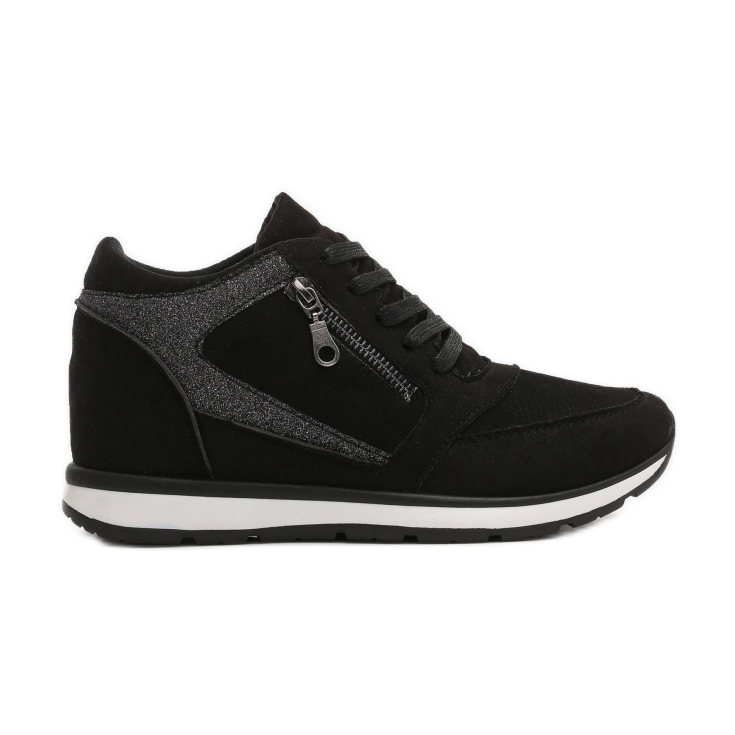 Le modèle 8368-1 est doté d'une cale couverte d'environ 4 cm de haut, qui ajoute de l'élégance et assure en même temps la stabilité pendant la marche. Une plateforme épaisse et blanche de couleur contrastante est un accent à la mode qui distingue ces chaussures des autres. Un avantage supplémentaire sont les lacets qui vous permettent d'ajuster les chaussures à vos besoins individuels, et la fermeture éclair décorative et l'insert gris donnent à l'ensemble un look moderne.