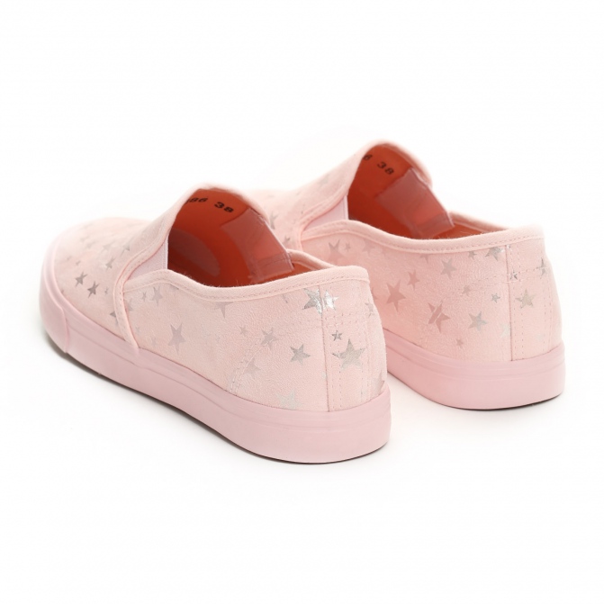 Les baskets se caractérisent par une fermeture à enfiler pratique qui permet de les enfiler rapidement et facilement. Le bout rond et la semelle plate en caoutchouc rose assurent confort de port et liberté de mouvement. L'intérieur des chaussures est doublé d'un matériau textile doux, ce qui augmente encore le confort d'utilisation.