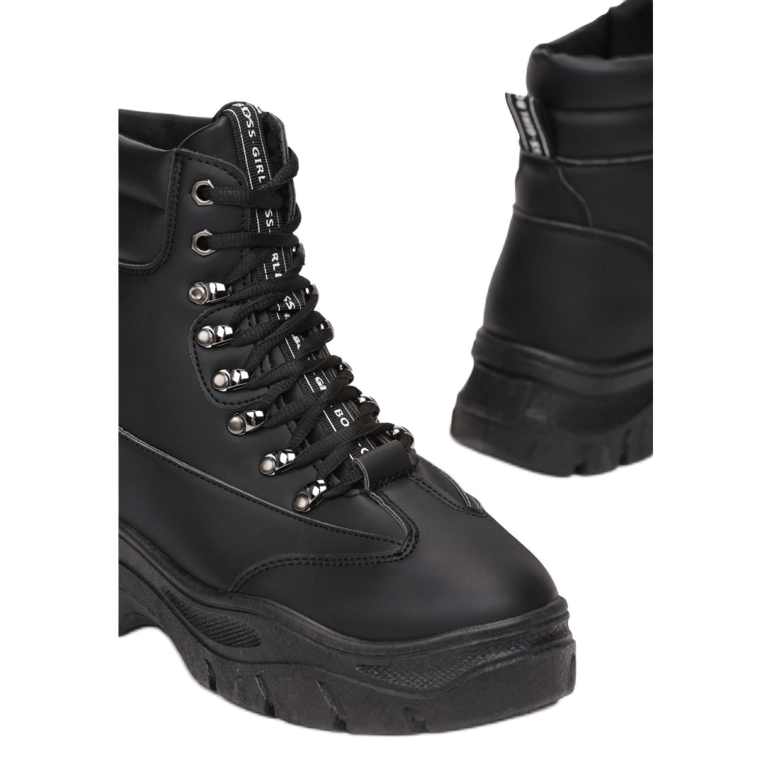 Fabriquées en éco-daim de haute qualité, elles se caractérisent par un bout rond, qui leur ajoute un charme subtil. L'isolation en fourrure artificielle les rend parfaites les jours les plus froids, assurant le confort de vos pieds. Un autre grand avantage est la fermeture à lacets, qui permet aux chaussures de s'adapter parfaitement à votre jambe.
